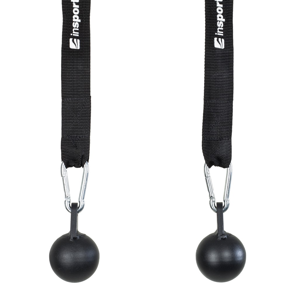 Recomandat pentru antrenarea muschilor: bratelor, mainilor, umerilor, incheieturilorPoate fi utilizat in loc de bara de tractiuni pentru antrenarea abdomenuluiMateriale rezistente de inalta calitateUsor de depozitatPentru antrenamente in interior/exteriorDiametru bila: 66 mmMaterial: fier, otel, poliesterLungime curelusa: 38 cmGreutate maxima a utilizatorului: 120 kgPretul este pentru o pereche.
