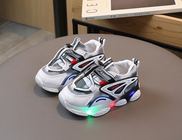 Adidasi albi cu detalii negre si luminite pentru baietei (marime disponibila: