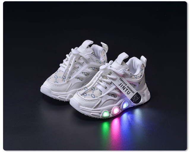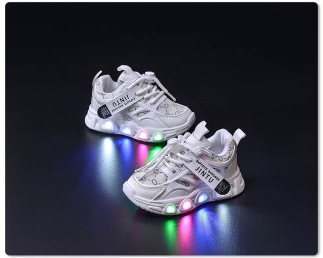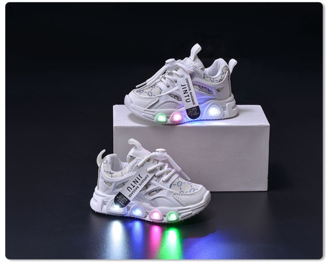 Adidasi pentru copii de culoare alba, cu lumini LED integrate in talpa si design modern.