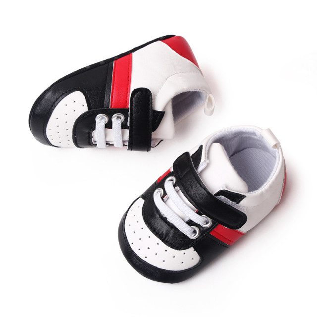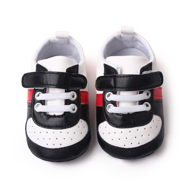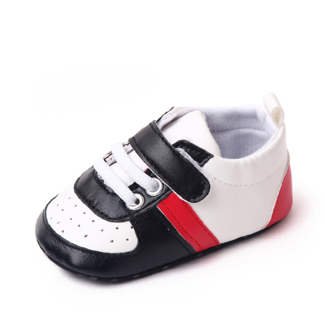 Adidasi albi cu negru si rosu (marime disponibila: 3-6 luni (marimea 18