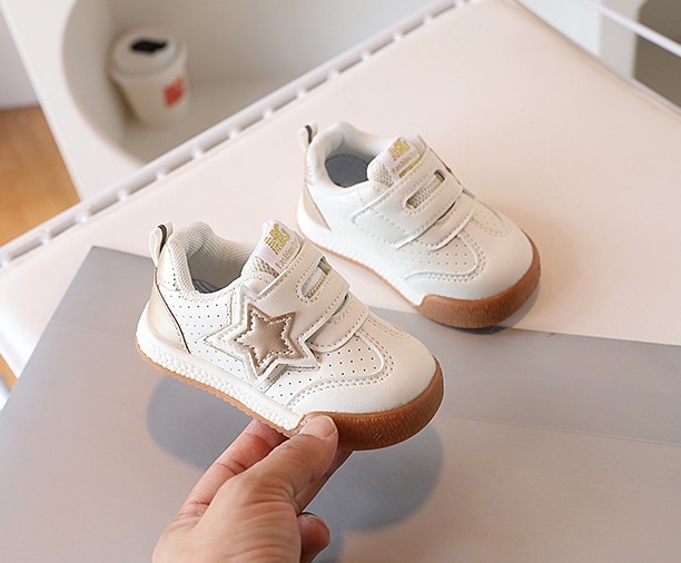 Adidasi albi pentru fetite - gold star (marime disponibila: 6-9 luni (marimea