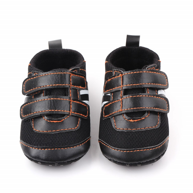 Adidasi pentru baietei din material textil cu insertie de material tip piele ecologica, se inchid cu barete cu arici intr-o parte.