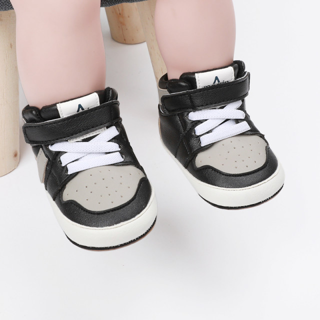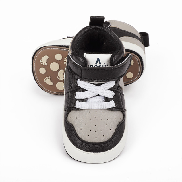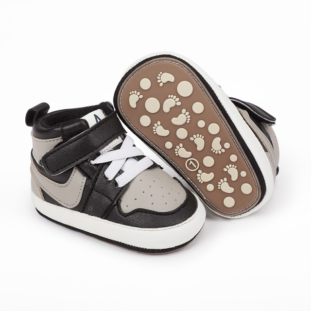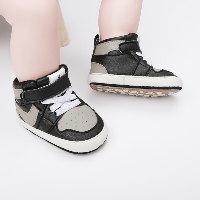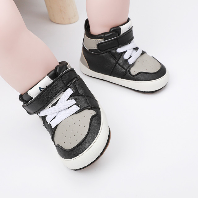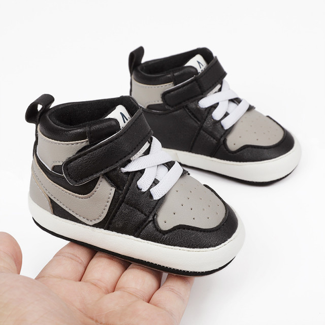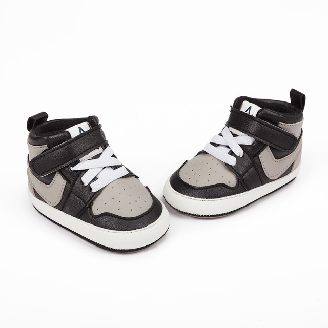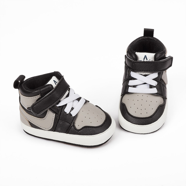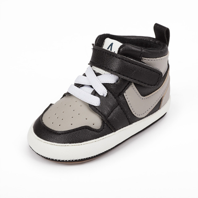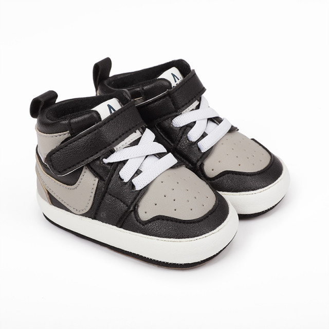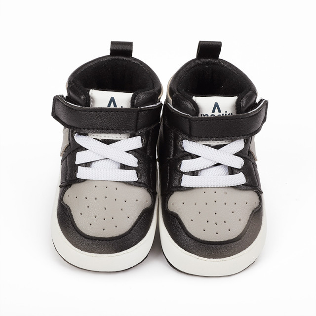 Adidasi negri cu gri si alb, inalti pentru bebelusi (marime disponibila: 3-6