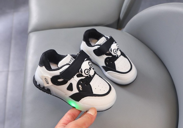 Adidasi negru cu alb cu luminite - panda (marime disponibila: marimea 22)