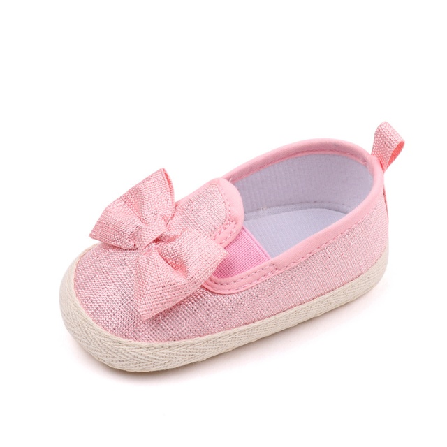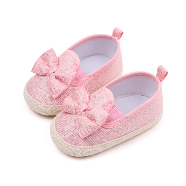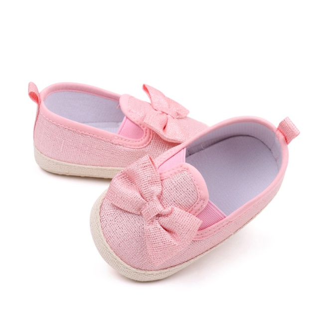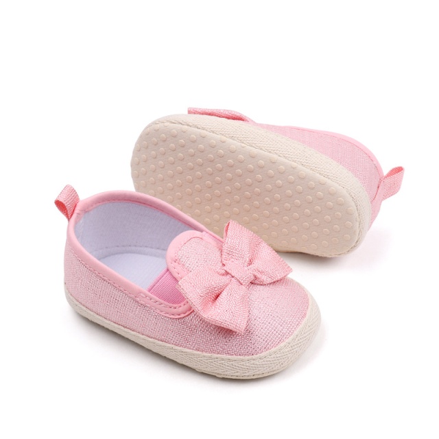 Pantofiori pentru bebelusi, model roz, cu fundita decorativa, sunt ideali pentru micutele printese.