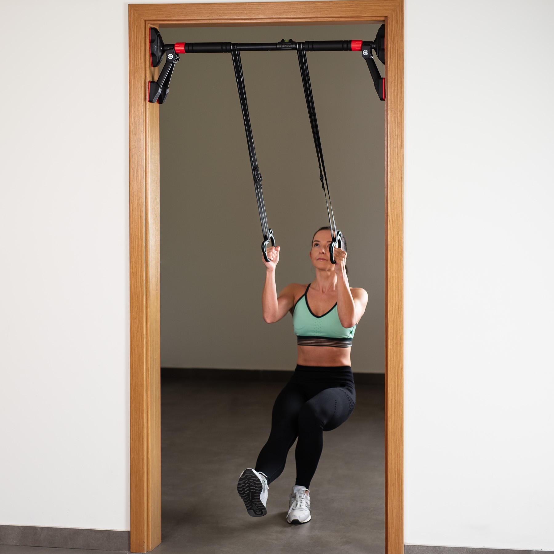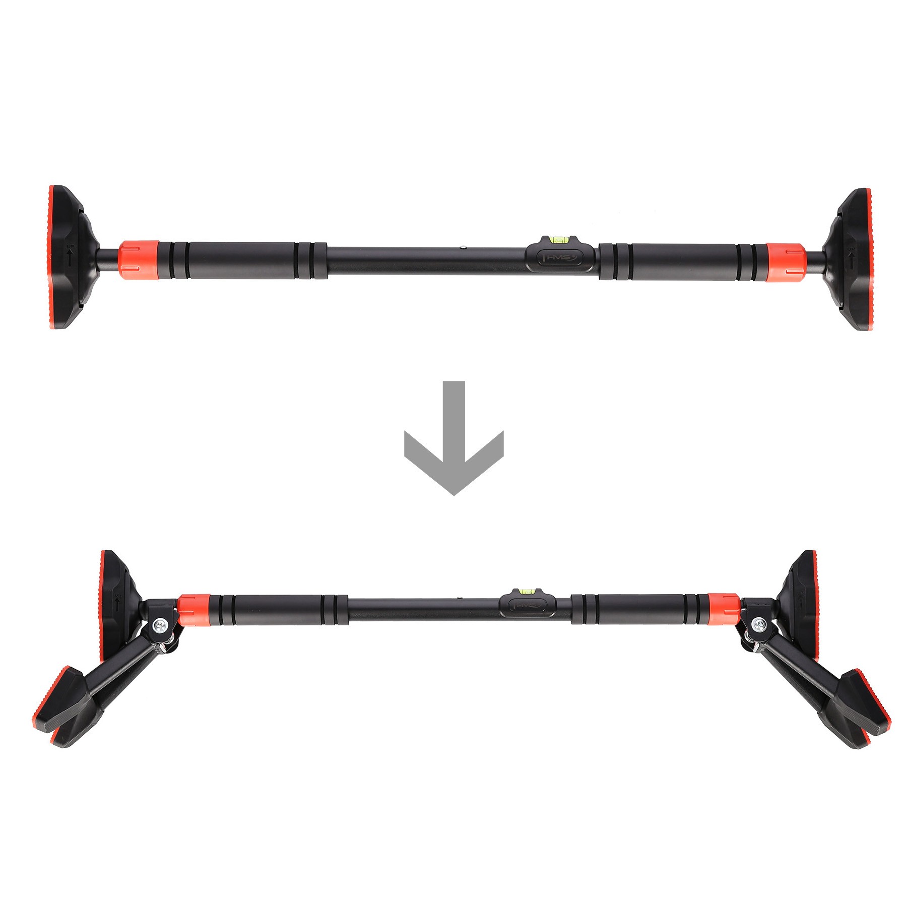 Bară telescopicăDDG03 este ușor de asamblat și dezasamblat, astfel încât nu va ocupa mult spațiu și poate fi mutată în funcție de nevoile dvs. O puteți atașa între tocurile ușilor sau pereților cu o lățime de 96 până la 130 cm. Bara este realizată din materiale de cea mai înaltă calitate, acoperită cu un strat anti-alunecare, iar suporturile de pe ambele părți vor oferi siguranță și confort maxim în timpul antrenamentului. Datorită nivelei cu bulă de aer, vei fi siguri că DDG03 a fost instalată corect.