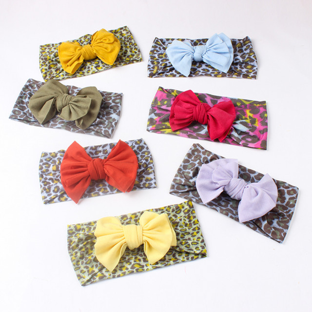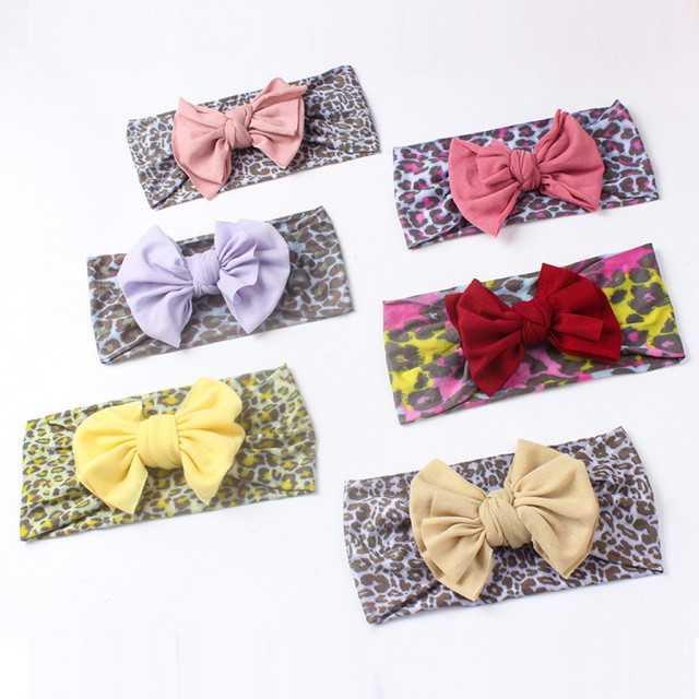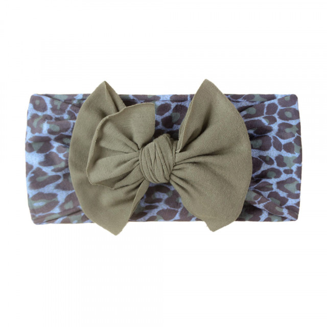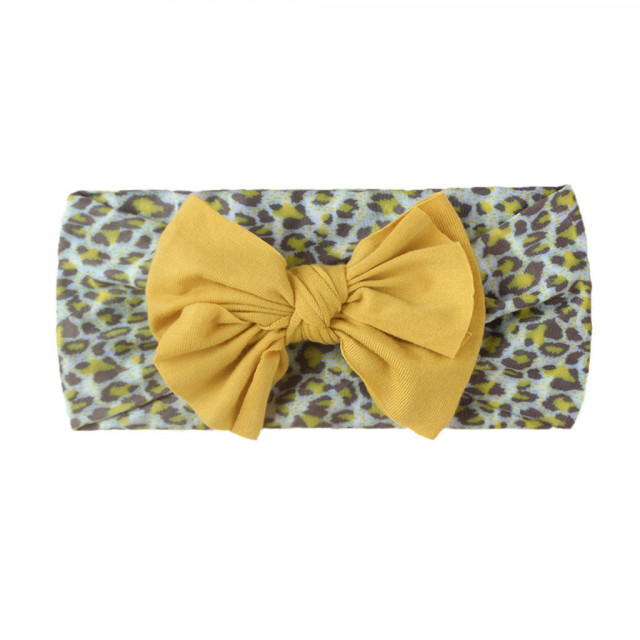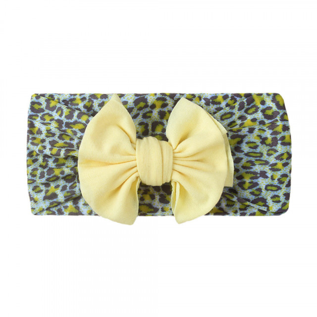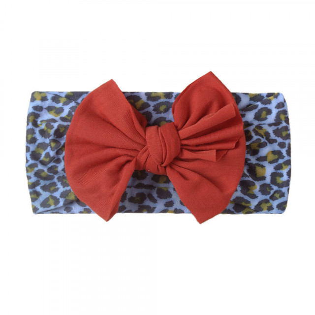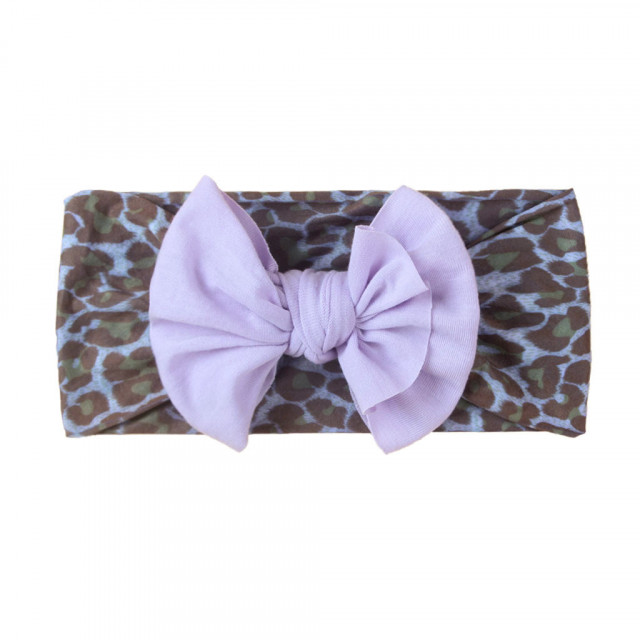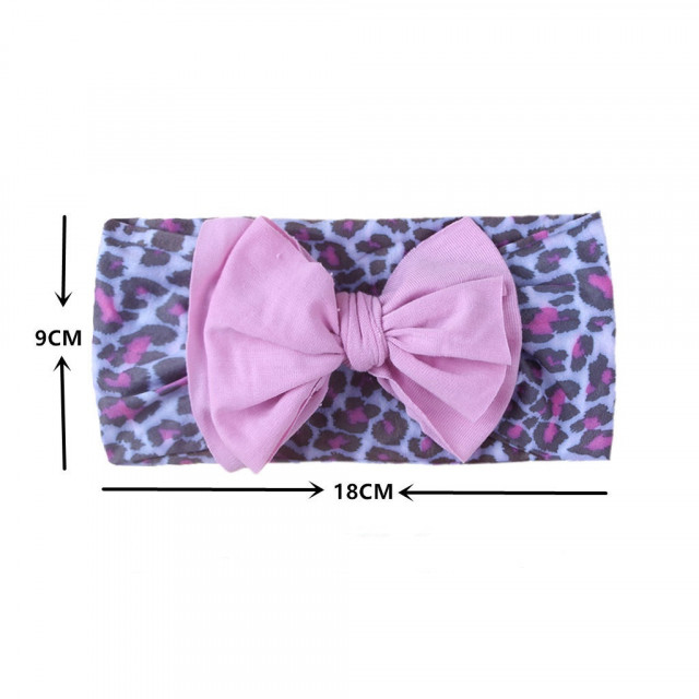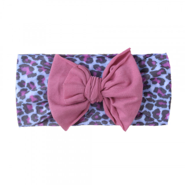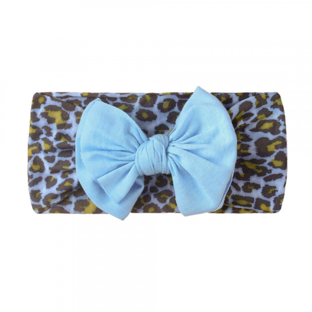 Bentita lata pentru fetite, cu imprimeu leopard, elastica si moale cu o funda aplicata in fata. Este lejera pentru capul bebelusei, modelandu-se cu usurinta.
