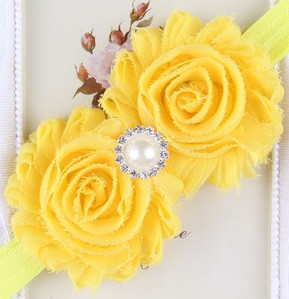 Bentita elastica si moale pentru fetite, cu o doi trandafiri cu o perluta si strasuri aplicate. Este lejera pentru capul bebelusului, modelandu-se cu usurinta.