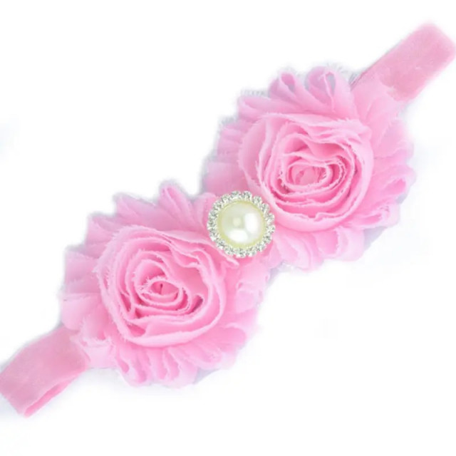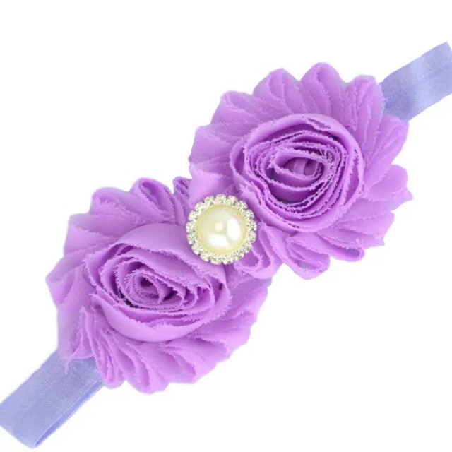 Bentita elastica si moale pentru fetite, cu o doi trandafiri cu o perluta si strasuri aplicate. Este lejera pentru capul bebelusului, modelandu-se cu usurinta.