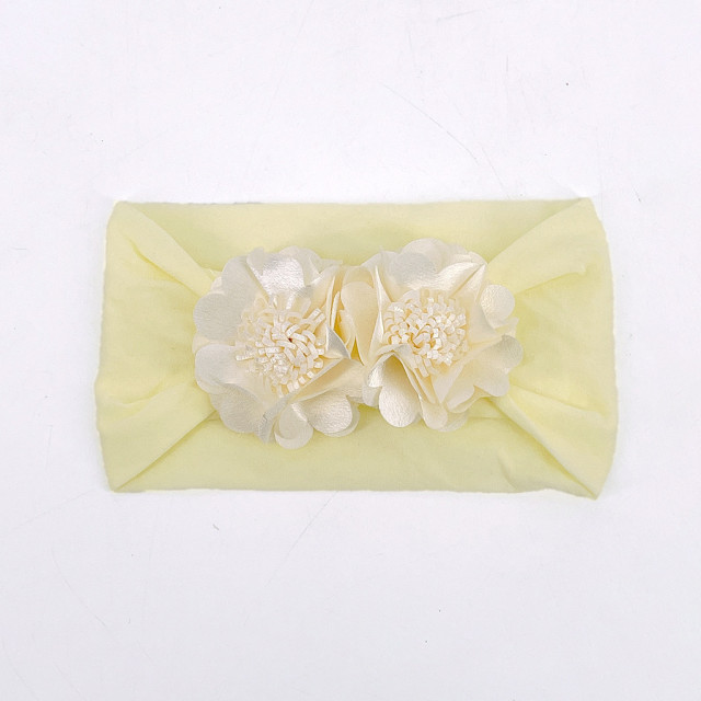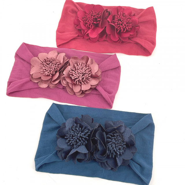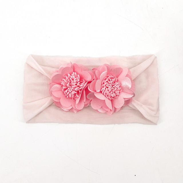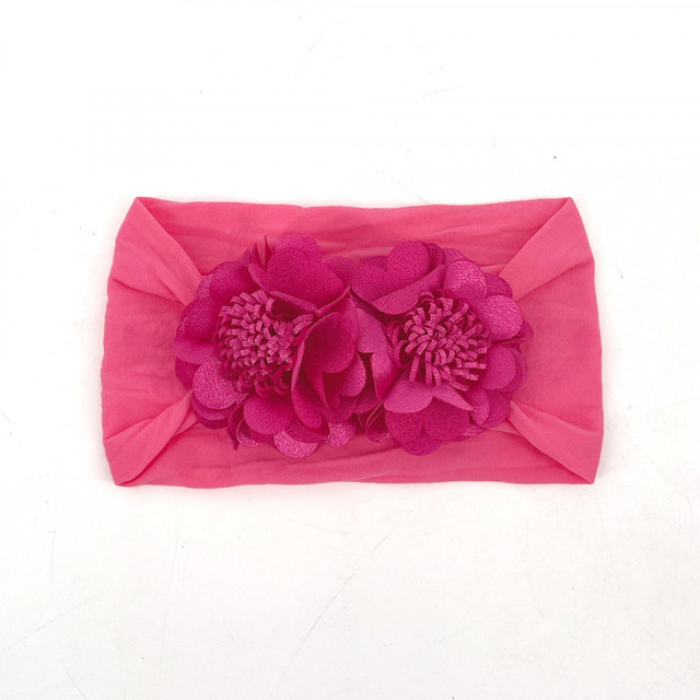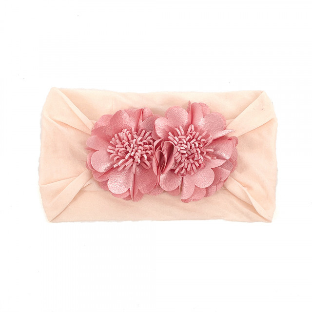 Bentita lata pentru fetite, elastica si moale cu o flori din saten aplicate. Este lejera pentru capul bebelusului, modelandu-se cu usurinta.