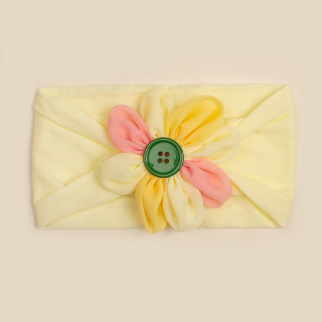 Bentita lata pentru fetite, elastica si moale cu o floricica cu petale colorate aplicata. Este lejera pentru capul bebelusului, modelandu-se cu usurinta.