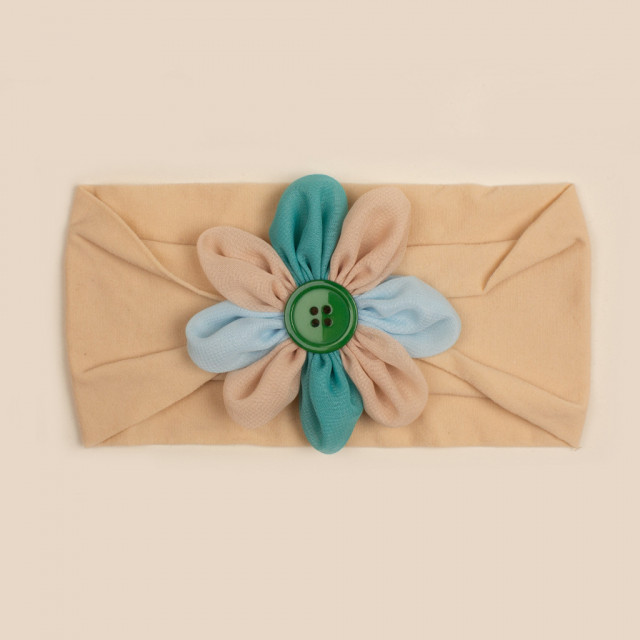 Bentita lata pentru fetite, elastica si moale cu o floricica cu petale colorate aplicata. Este lejera pentru capul bebelusului, modelandu-se cu usurinta.