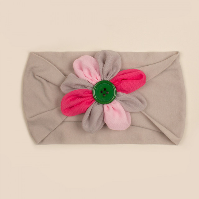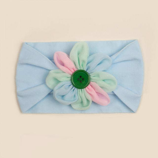 Bentita lata pentru fetite, elastica si moale cu o floricica cu petale colorate aplicata. Este lejera pentru capul bebelusului, modelandu-se cu usurinta.