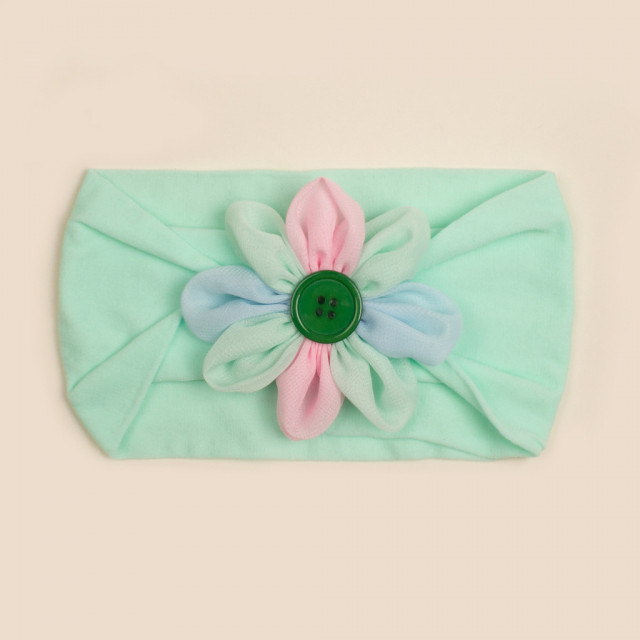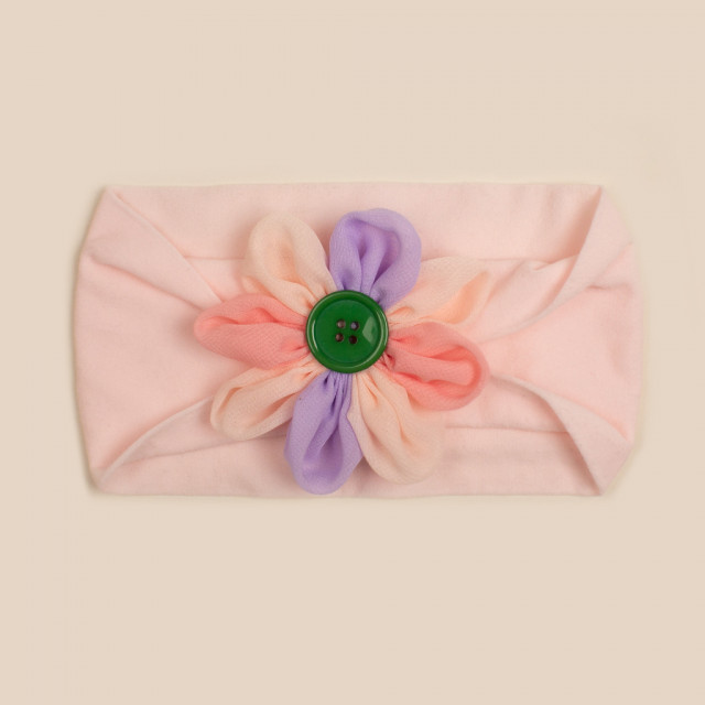 Bentita lata pentru fetite, elastica si moale cu o floricica cu petale colorate aplicata. Este lejera pentru capul bebelusului, modelandu-se cu usurinta.