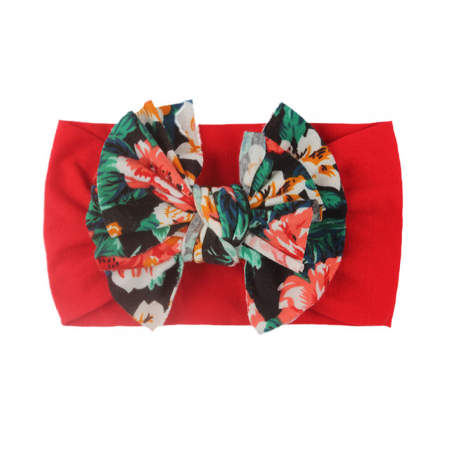 Bentita lata pentru fetite, elastica si moale cu o fundita cu diverse imprimeuri inflorate aplicata. Este lejera pentru capul bebelusului, modelandu-se cu usurinta.