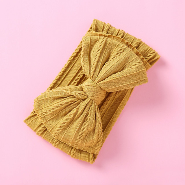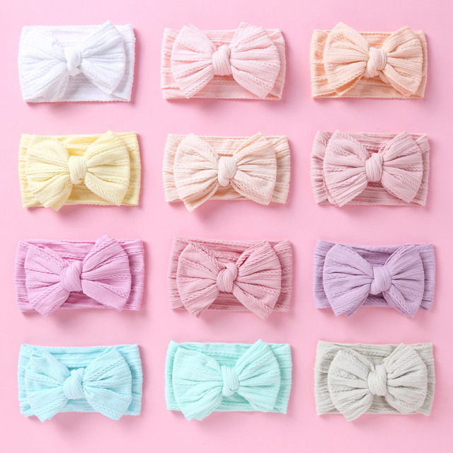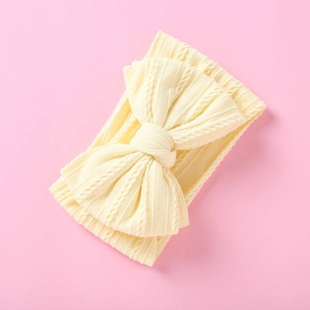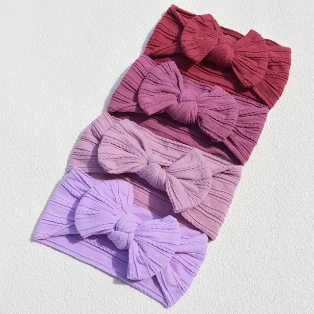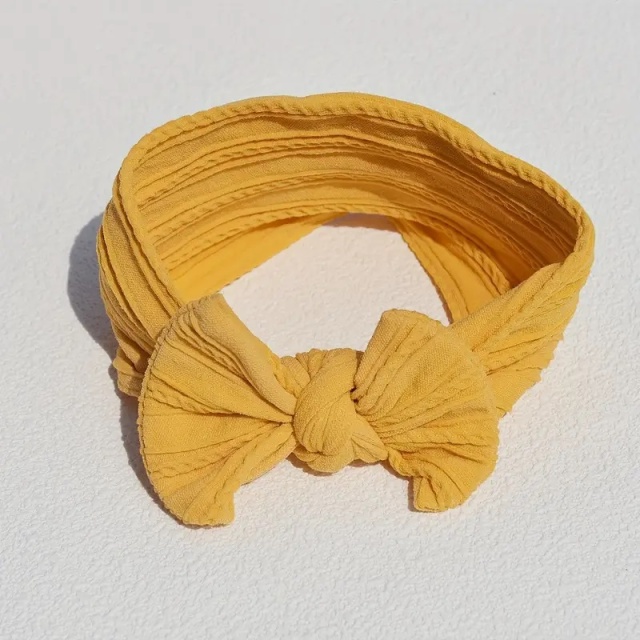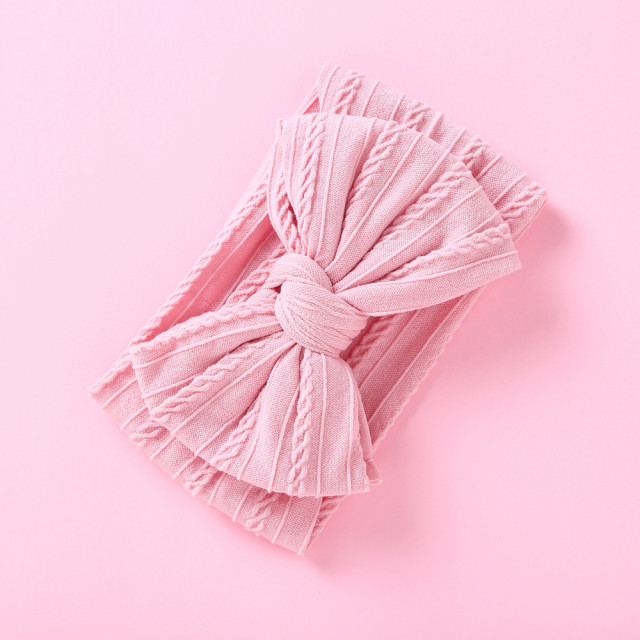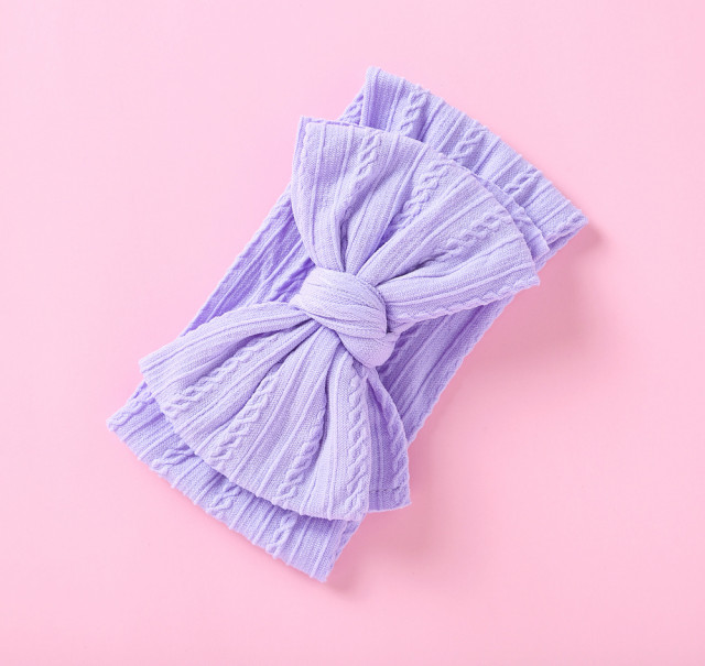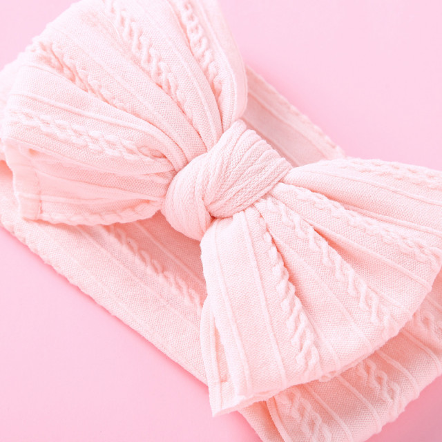 Bentita lata pentru fetite, elastica si moale, cu model din tesatura si fundita prevazuta in fata. Este lejera pentru capul bebelusului, modelandu-se cu usurinta.