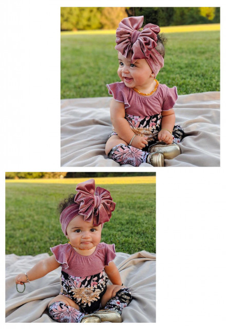 Bentita lata pentru fetite, din catifea, elastica si moale cu o funda aplicata. Este lejera pentru capul bebelusului, modelandu-se cu usurinta.