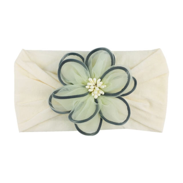 Bentita lata pentru fetite, elastica si moale cu o floare din tulle aplicata. Este lejera pentru capul fetitei, modelandu-se cu usurinta.