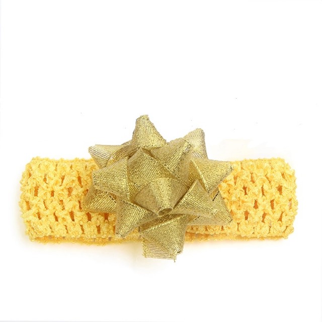 Bentita pentru fetite galbena, cu o floricica aurie aplicata. Elasticul este lejer pentru capul bebelusului, foarte fin, modelandu-se cu usurinta.