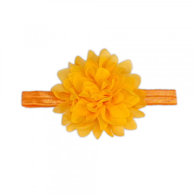 Bentita pentru fetite, cu o floare mare cu petale aplicata. Elasticul este lejer pentru capul bebelusului, foarte fin, modelandu-se cu usurinta.