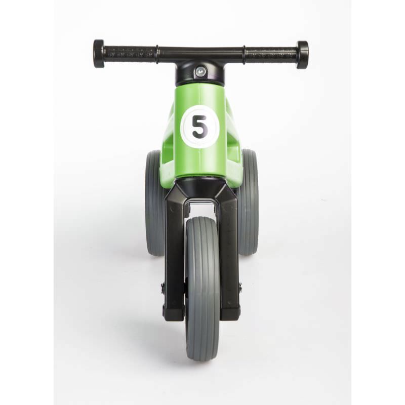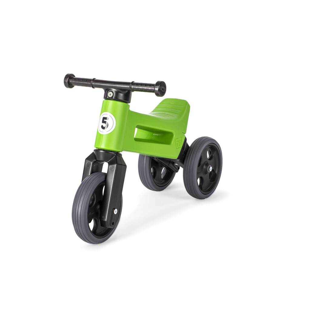 Bicicleta fara pedale 2 in 1, cu roti de cauciuc.Raza de viraj limitata pentru prevenirea accidentelor.Ghidon cu manere aderente care previn alunecarea mainilor copilului de pe ghidon.Modificare usoara din bicicleta cu 3 roti in 2 roti.Roti cu diametrul de 20 cm.Un ax spate suplimentar converteste bicicleta dintr-un vehicul cu 3 roti intr-unul cu 2 roti. Astfel se transforma din pushbike in balance bike in doar cateva minute!In versiunea cu 2 roti (balance bike), bicicleta ii invata pe micii ciclisti avansati abilitatile necesare ciclismului, pastrand in acelasi timp siguranta.Toate modelele Funny Wheels pastreaza designul original Rider, cu axe reglabile pe inaltime pe rotile fata si spate.Bicicletele Funny Wheels sunt proiectate si produse in UE, utilizand cele mai bune materiale si tehnologii de fabricare.Rotile modelului Funny Wheels sunt acoperite cu cauciuc.