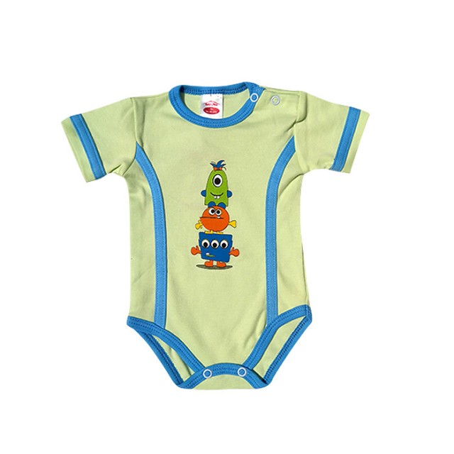 Body bebe, vernil, se inchide pe umar cu capse, are manecute scurte.