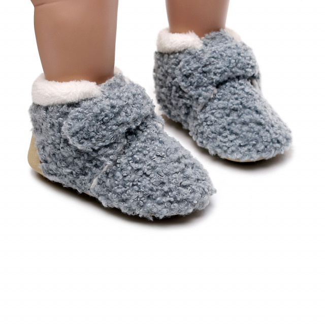 Botosei imblaniti pentru baietei, din material textil tip blanita plusata, se inchid cu bareta cu arici intr-o parte.