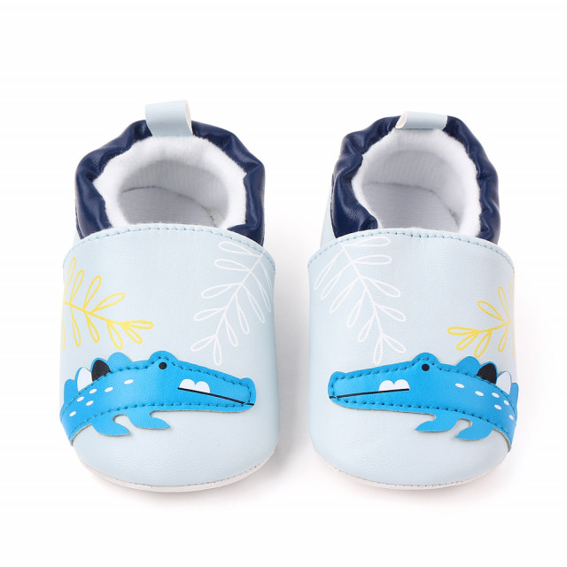 Model: botosei pentru baietei din material tip piele ecologica, cu un crocodil dragalas aplicat in fata, sunt prevazuti cu elastic la spate.