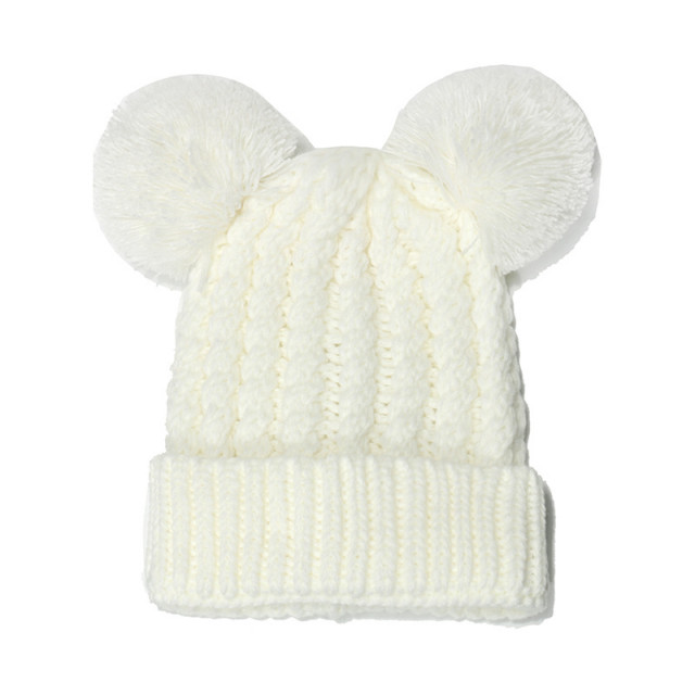 Caciulita tip fes crosetata pentru fetite, cu model din tesatura, cu 2 ciucuri aplicati.