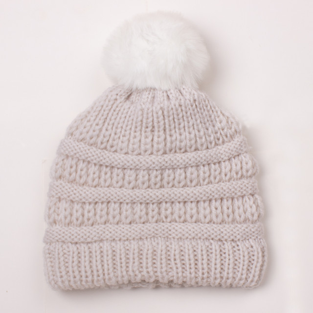 Caciulita crosetata tip fes, pentru bebelusi, cu model din tesatura si cu ciucuras din blanita moale.
