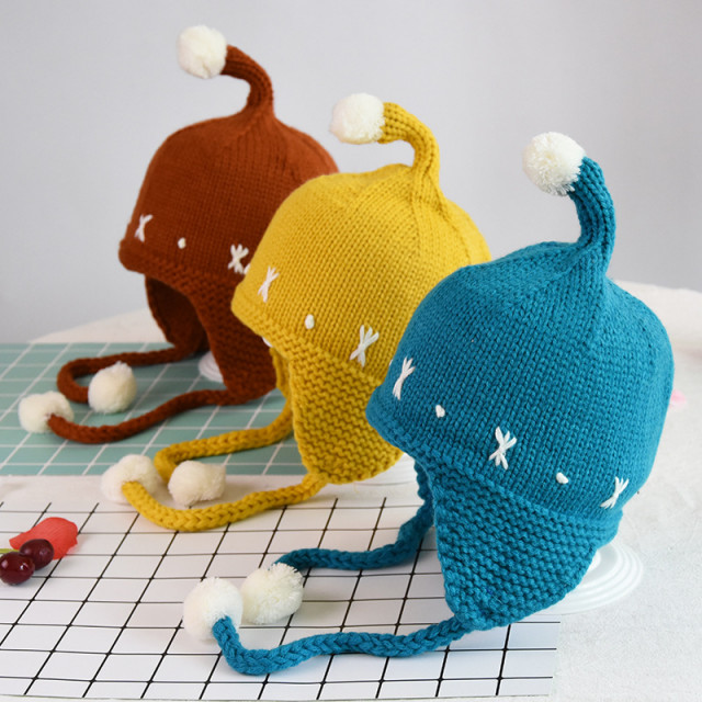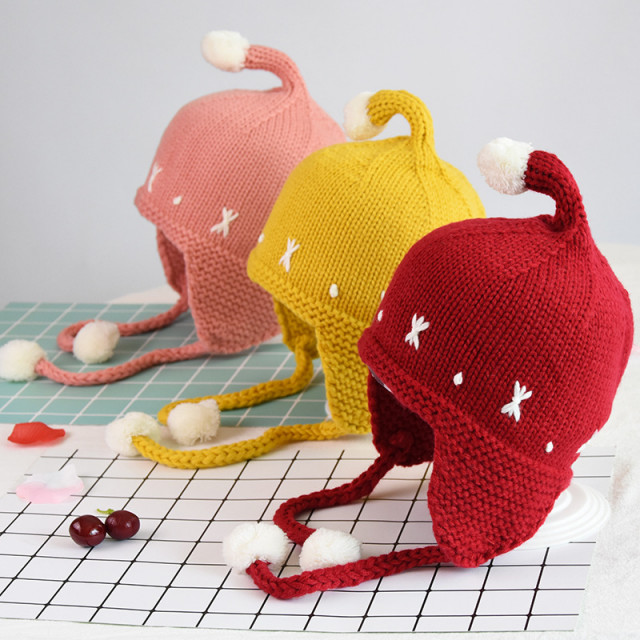 Caciulita crosetata tip piticot, cu protectie pentru urechiuse, se inchide sib barbie.