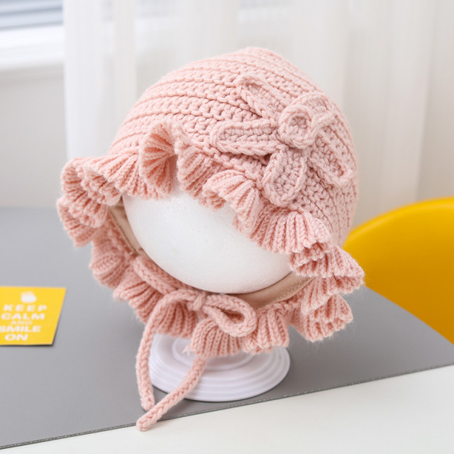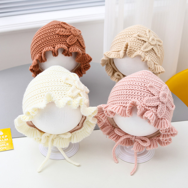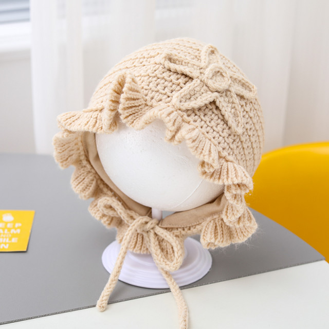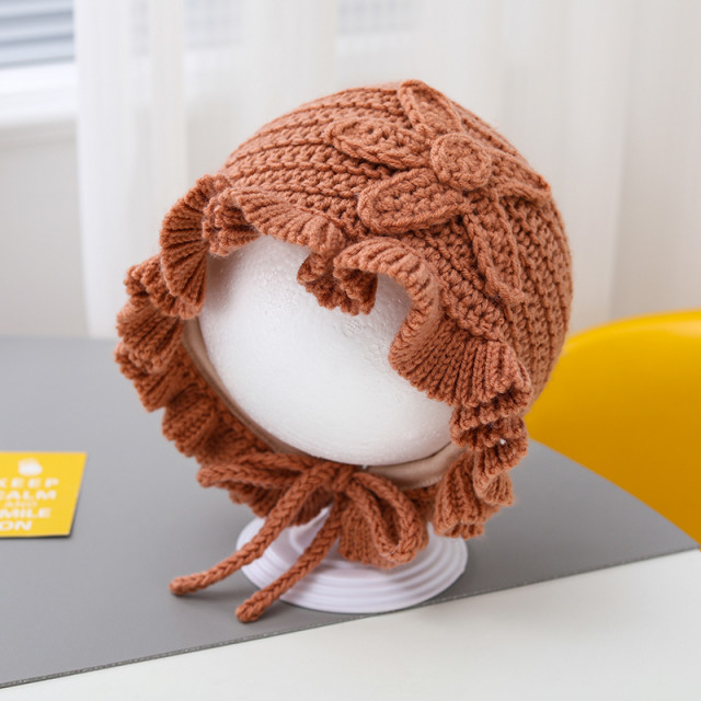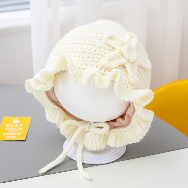Caciulita crosetata tip boneta, dublata, cu volanas in fata si cu o steluta de mare aplicata intr-o parte, se inchide sub barbie.