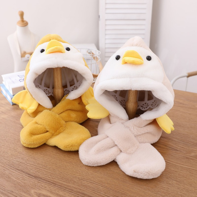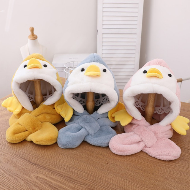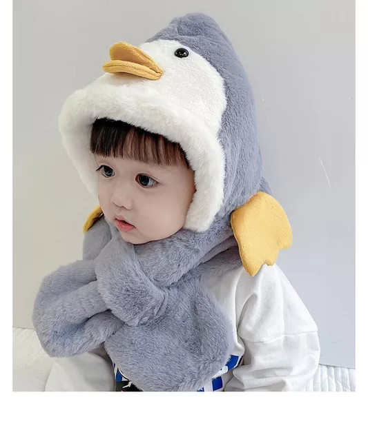 Caciulita pentru copilasi, din blanita plusata, in forma de pinguin.