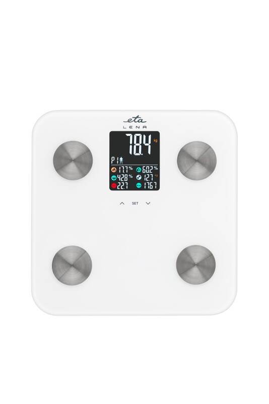 Capacitate maxima de cantarire 180 kg / 396 lb / 28 st Precizie 100 g Suprafata eleganta din sticla securizata cu o grosime de 6 mm Unitati de cantarire: kg, st, lb Masoara: greutatea, grasimea corporala, continutul de apa din corp, masa musculara, masa osoasa, KCAL si IMC Ecran LCD color Posibilitatea de salvare a datelor analizate pentru 10 persoane (in functie de sex, varsta, inaltime) Analiza folosind 5 parametri - inaltime, greutate, varsta, sex si rezistenta biologica Analize corporale pentru persoane cu varsta cuprinsa intre 10-80 ani Cantareste imediat - trebuie doar sa urcati pe cantar si acesta va arata imediat greutatea masurata Oprire automata in caz de neutilizare Indicator de suprasarcina, indicator de baterie descarcata Intretinere usoara si igienica Functionare cu 4 baterii AAA (incluse) Controlul greutatii si al sanatatii la indemana ta Cantarul personal cu analiza corporala este un ajutor ideal pentru toti cei care doresc sa-si tina sanatatea sub control. Ofera date exacte despre grasimea corporala, continutul de apa, masa musculara, masa osoasa, IMC si aportul caloric zilnic recomandat. Acest dispozitiv este conceput pentru a va ajuta sa urmariti cu usurinta modificarile in compozitia corpului dumneavoastra si sa va motiveze sa mentineti un stil de viata sanatos . Design de top Cu o suprafata eleganta de cantarire din sticla securizata de 6 mm , ETA 3781 90000 nu numai ca arata grozav dar asigura si stabilitate si siguranta de fiecare data cand il utilizati. Datorita controlului tactil si a pornirii automate tot ce trebuie sa faci este sa urci pe cantar si vei obtine rezultatele imediat, usor si fara complicatii. Analizeaza si motiveaza intreaga familie Dispozitivul permite stocarea datelor personale pentru 10 utilizatori diferiti, ceea ce este ideal pentru locuintele cu mai multi membri. Toata lumea isi poate urmari progresul si poate analiza rezultatele in functie de parametrii sex, varsta, inaltime si greutate. In plus, cantarul este potrivit pentru utilizatorii cu varsta cuprinsa intre 10 si 80 de ani, ceea ce il face un instrument universal pentru un stil de viata sanatos a intregii familii. Functii inteligente pentru utilizare convenabila Ecranul LCD color afiseaza imediat si clar toate masuratorile ceea ce faciliteaza o evaluare rapida si eficienta a rezultatelor. In plus, cantarul ofera oprire automata, un indicator de suprasarcina si un indicator de baterie descarcata, utilizarea fiind simpla si fara griji. Drumul catre sanatate incepe prin constientizare Cu o precizie de 100 de grame si optiunea de masurare in kg, lb si st , acest cantar permite o analiza detaliata a starii corpului pe baza a cinci parametri. Obtinerea informatiilor corecte este primul pas pe drumul catre un corp mai sanatos iar acest cantar este instrumentul potrivit pentru a va ajuta in acest demers.Descriere produs