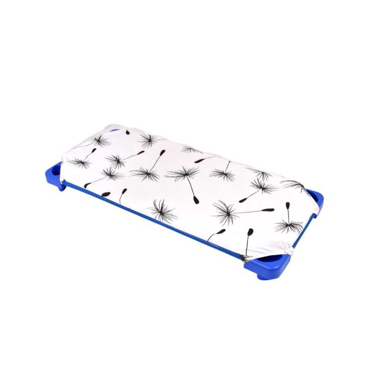 Dimensiunea cearsafului este potrivita pentru patutul stivuibil din cadrul gradinitelor si creselor.