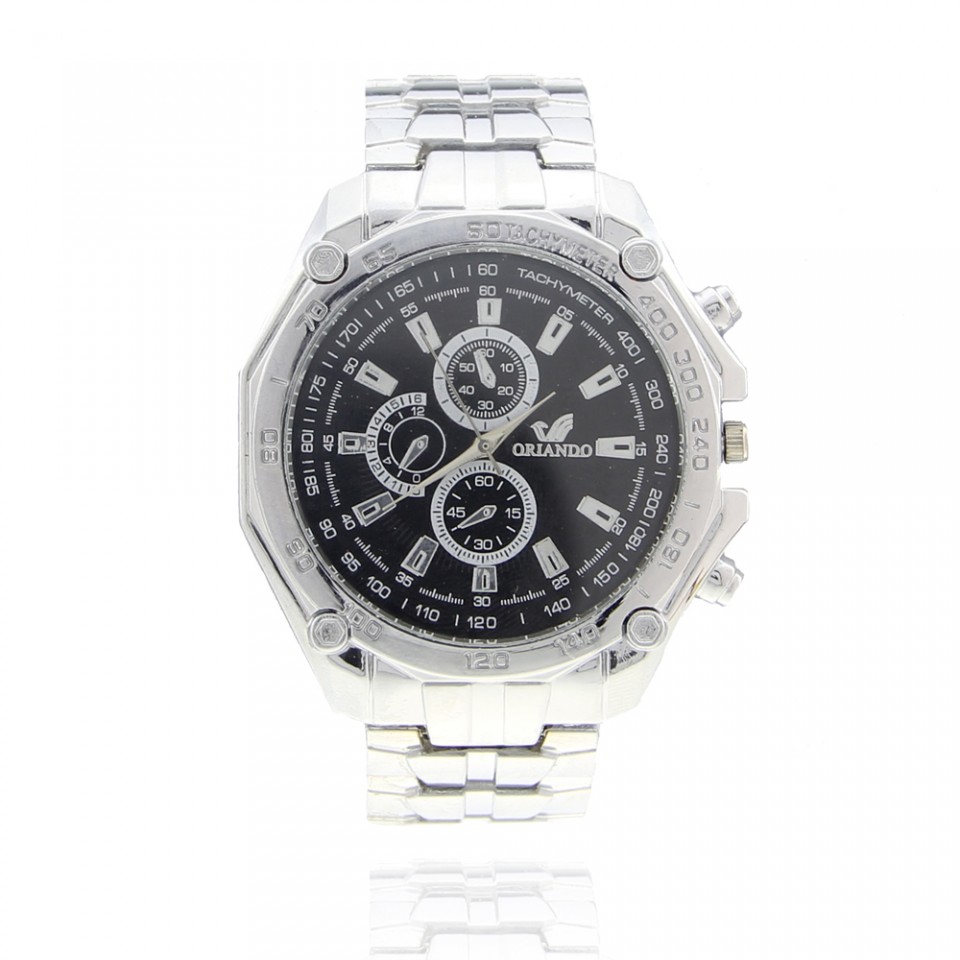 Gen : Masculin Stil : Sport-Elegant Mecanism : Quartz (Baterie AG4/LR626 ) Producator : Orlando Material Carcasa : Metal Diametru Carcasa : 4.4 cm Latime Carcasa : 1 cm Material Curea : Metal Lungime Curea : 25.5 cm Latime Curea : 2 cm Material Geam : Sticla Functii : Ora, Minut, Secunda Culoare cadran : Negru Culoare curea : Argintiu Afisaj : Analog Subcadranele : Sunt de design Rezistent la apa : Folosire zilnica obisnuita. Nu puneti Ceasul in Apa! Garantie : Produsul beneficiaza de garantie 24 luni pentru mecanism. Nota informativa ! Va recomandam sa verificati integritatea fizica a coletelor in momentul in care le primiti, daca constatati vreo deteriorare asupra coletului solicitati curierului un proces-verbal de dauna ( GLS Curier ). Daca nu faceti procesul verbal de dauna orice reclamatie ulterioara referitoare la integritatea fizica a continutului din colet va fi considerata nula. Imaginile prezentate au scop informativ. Culoarea si textura produselor din magazin pot varia datorita procedeelor foto sau variatiilor de fabricatie ale producatorului.Descriere produs