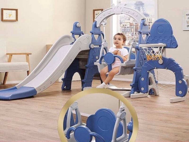Centru de joaca cu leagan,tobogan si cos de baschet
