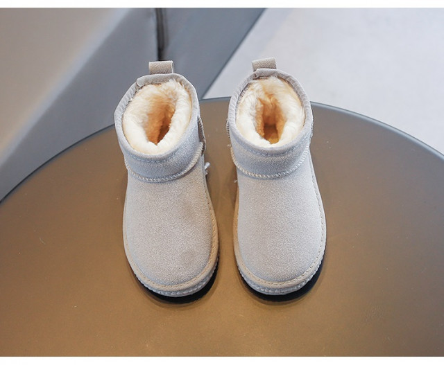 Cizme pentru fetite, imblanite, din material tip piele intoarsa.