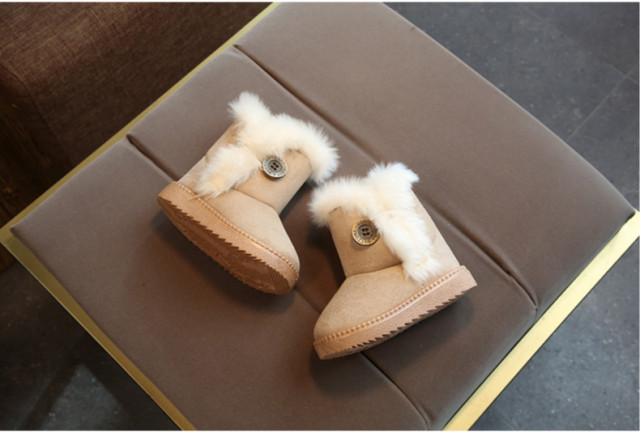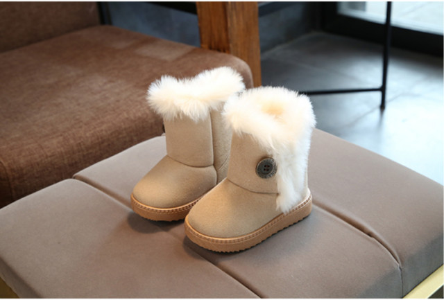 Cizme imblanite pentru copii, din material tip piele intoarsa. Se inchid cu un nasturel intr-o parte, facilitand incaltarea cu usurinta.