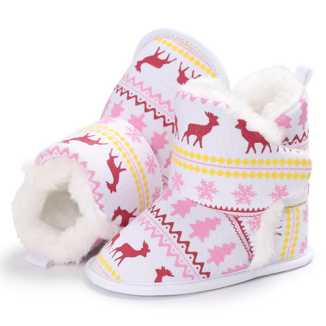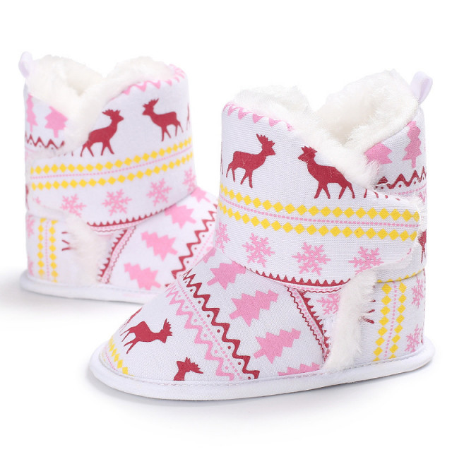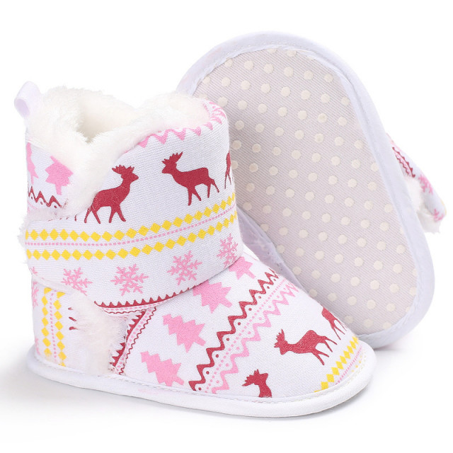 Cizmulite albe imprimate cu reni (marime disponibila: 3-6 luni (marimea 18