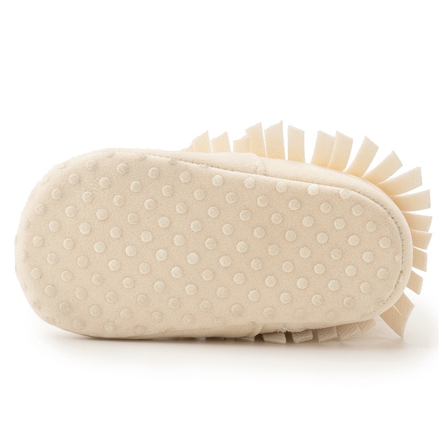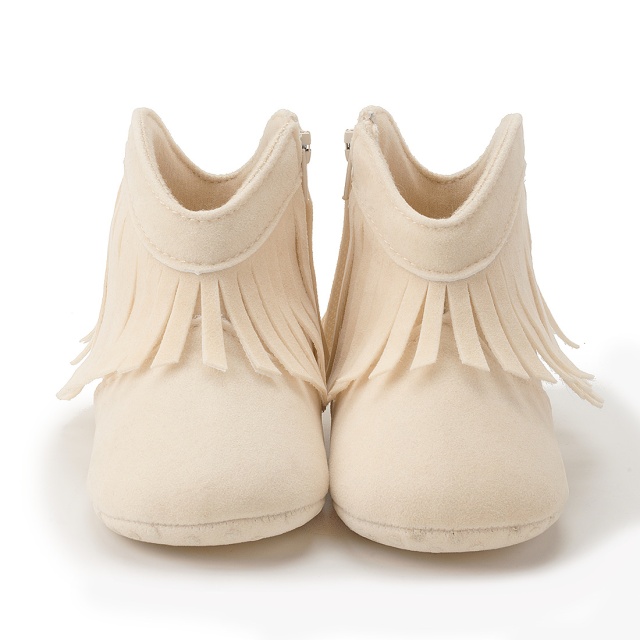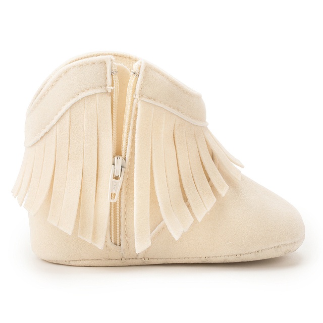 Cizmulite bebelusi bej cu franjuri, se inchid cu fermoar intr-o parte.