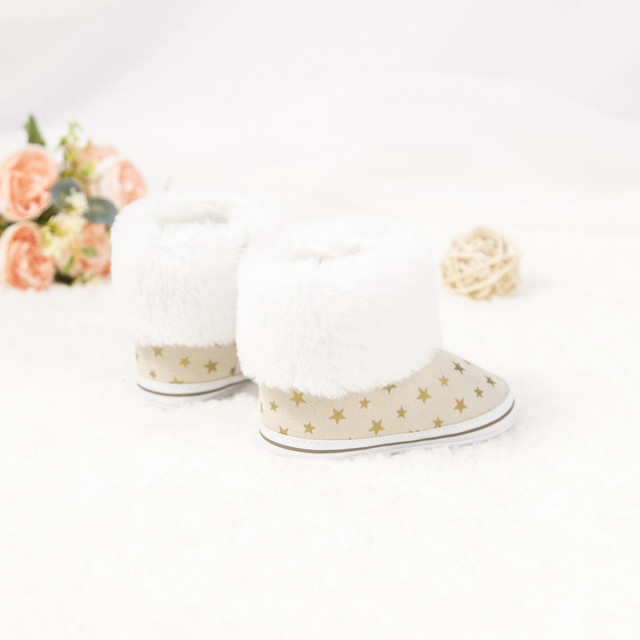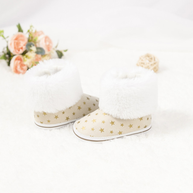 Cizmulite crem cu steluta aurii si blanita alba (marime disponibila: 6-9 luni