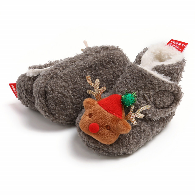 Cizmulite gri din blanita - renul (marime disponibila: 3-6 luni (marimea 18