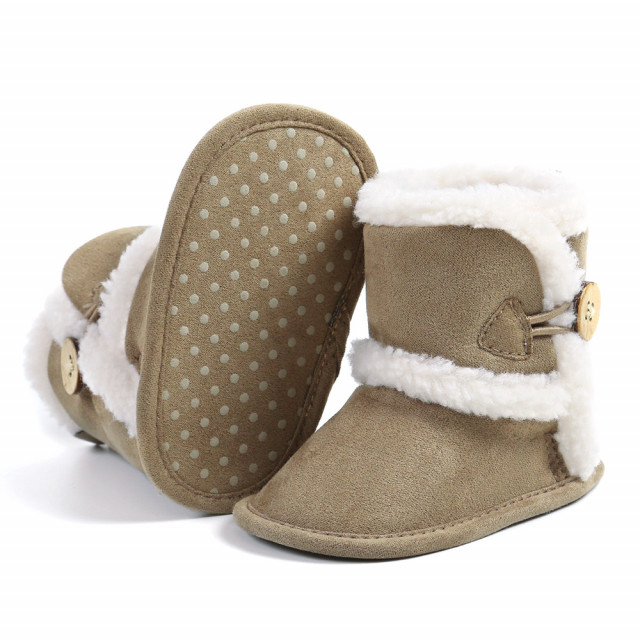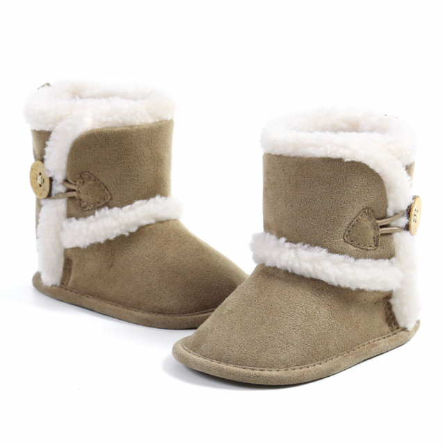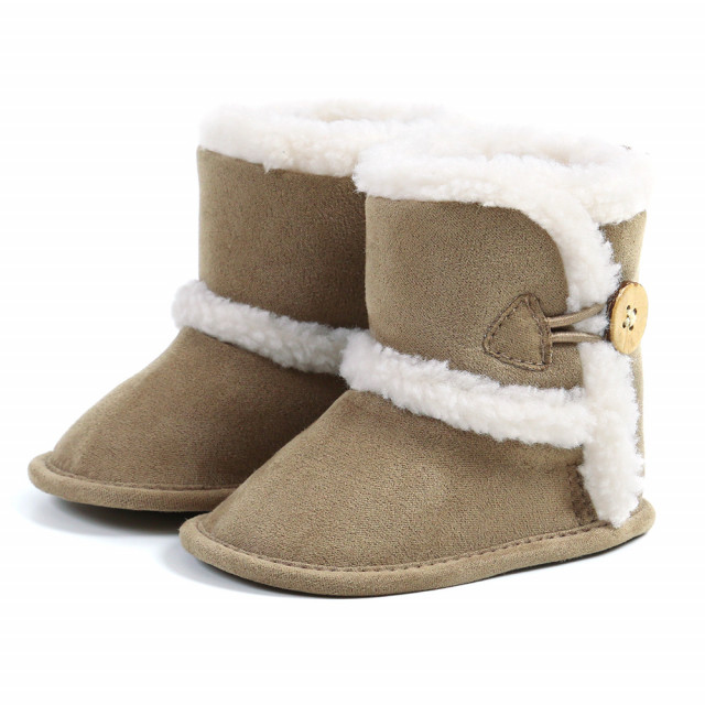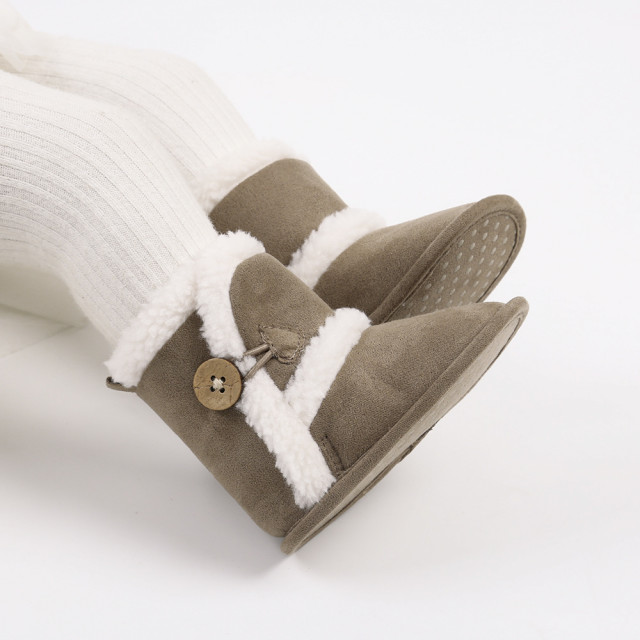 Cizmulite pentru bebelusi, din material tip piele intoarsa, imblanite.