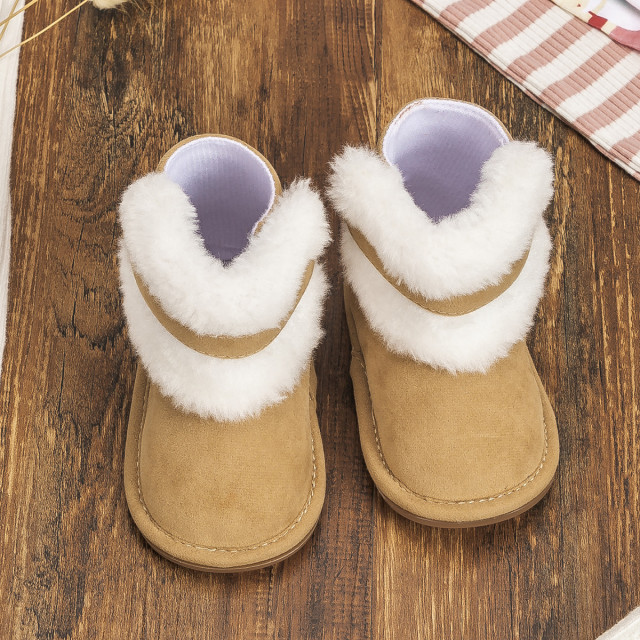 Cizmulite neimblanite pentru fetite, din material tip piele intoarsa, prevazute cu blanita alba in fata, se inchid cu arici intr-o parte.