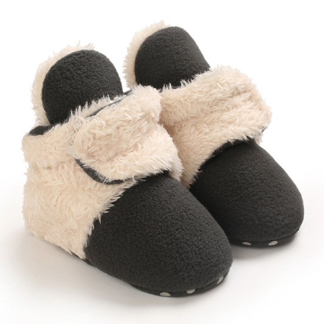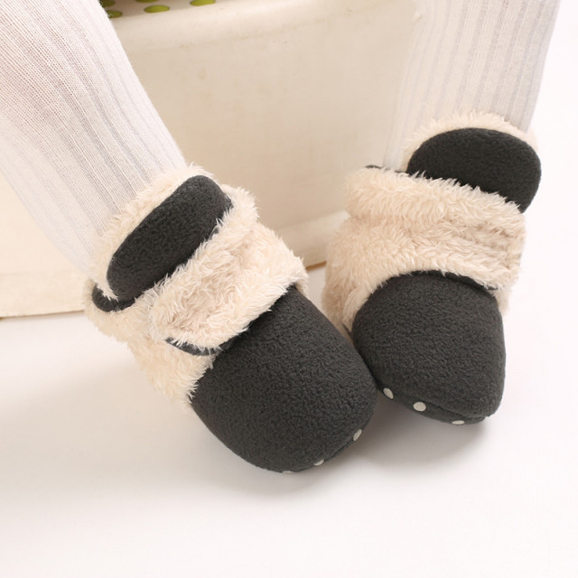 Cizmulite plusate crem cu gri petrol pentru bebelusi (marime disponibila: 3-6