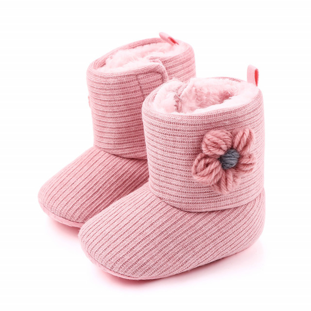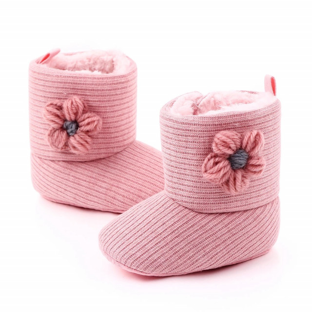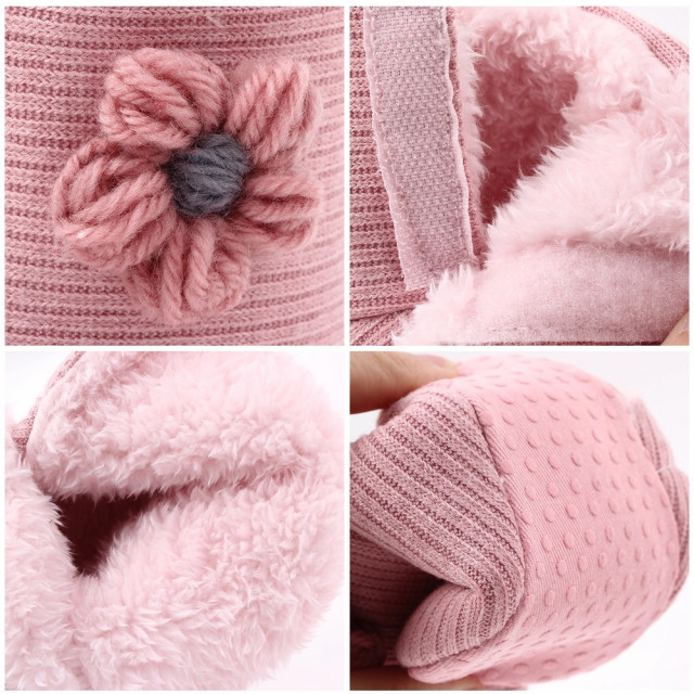 Cizmulite pentru fetite imblanite, din material textil, cu o floricica aplicata intr-o parte. Se inchid cu arici intr-o parte facilitand incaltarea cu usurinta.