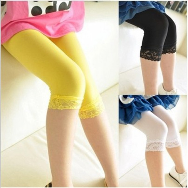 Colanti de fetite, moi si placuti la atingere, trei sferturi, cu danteluta in partea de jos.