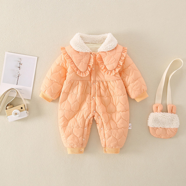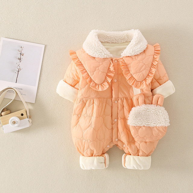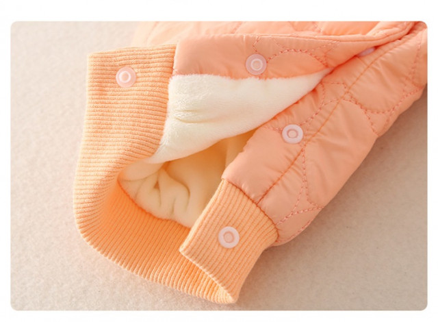 Combinezon pentru fetite, din fas, captusit pe interior cu polar, fara gluga si fara botosei. Se inchide cu capse pe mijloc facilitand imbracarea cu usurinta.