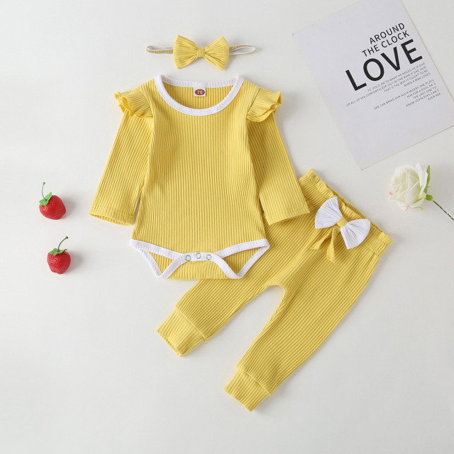 Compleu galben mustar pentru fetite (marime disponibila: 3-6 luni (marimea 18